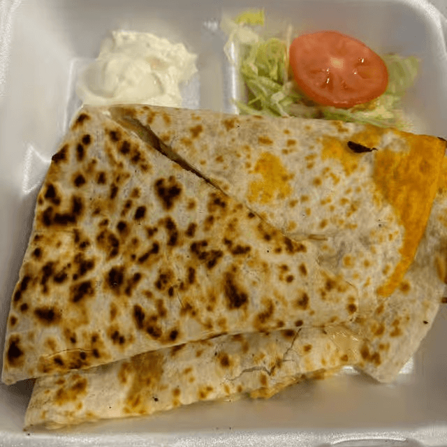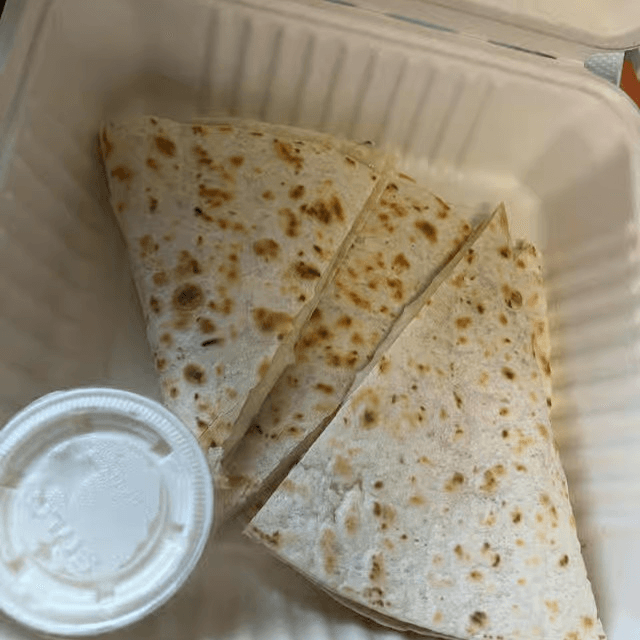 Our flour tortilla topped with mozzarella cheese and a side of sour cream