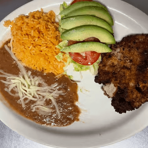 Breaded chicken or pork cutlet topped with lettuce, tomato, avocado, crema and choice of flour or corn tortillas